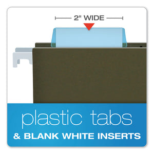 Transparent Colored Tabs For Hanging File Folders, 1/5-Cut, Blue, 2" Wide, 25/Pack