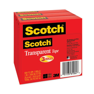 Transparent Tape, 3" Core, 1" X 72 Yds, Transparent, 3/pack