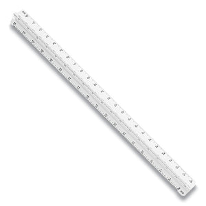 Accurate and versatile ruler is an essential tool for architects who count on precision. Three sides with six different scales. Open divided: 3/32, 1/8, 3/16, 1/4, 3/8, 1/2, 3/4, 1, 1 1/2, 3" = 1 foot. Full divided: inches to 16ths. White plastic.
