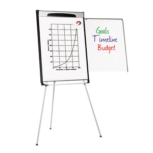 Tripod Extension Bar Magnetic Gold Ultra Dry Erase Easel, 29" x 41", White Surface, Black/Satin Aluminum Frame