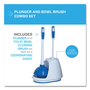 Turbo Plunger And Bowl Brush Set, 12.5" Plastic Handle, 6" Dia, White