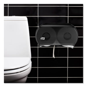 The Tork Twin Jumbo Bath Tissue Roll Dispenser's large double 9" roll capacity is the ideal solution for any high traffic environment. This dispenser solution helps to reduce maintenance costs by decreasing the frequency that the dispenser needs to be refilled and fewer service interruptions to be experienced by your patrons.