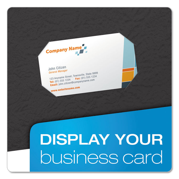 Report portfolios let you keep loose papers with fastened report. Leatherette-grained stock for a rich feel. Business card slot on inside front pocket. Holds up to 135 sheets of paper.