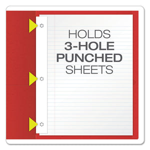 Twin-Pocket Folders With 3 Fasteners, 0.5" Capacity, 11 X 8.5, Red, 25/box