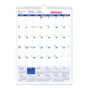 Twin-Wirebound Wall Calendar, One Month per Page, 8 x 11, White Sheets, 12-Month (Jan to Dec): 2025