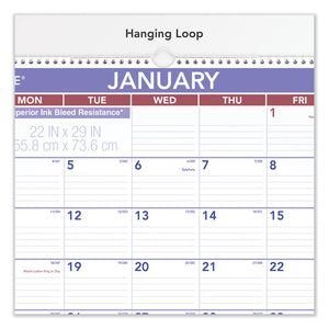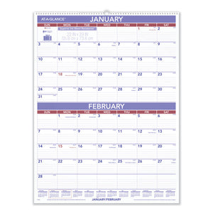 Two-Month Wall Calendar, 22 x 29, White/Blue/Red Sheets, 12-Month (Jan to Dec): 2025