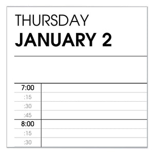 An AT-A-GLANCE Two Person Daily Appointment Book is the perfect solution for side-by-side planning for up to two people. One day per page layout shows two columns with quarter-hourly appointment times for detailed planning of daily tasks and meetings. Two person daily appointment book covers a 12 month date range from January to December. High-quality paper features superior ink bleed resistance. One day per page spread shows two vertical columns, one for each person, to keep the multi-person planning neatly organized and easy to read. Features quarter-hourly appointment times from 7AM to 8PM on weekdays and 7AM to 6PM on Saturday. Two past and current month reference calendar and four future months are shown on each spread for quick date checking. Planner has a black faux leather cover with twin wire binding. 8" x 11" page size.