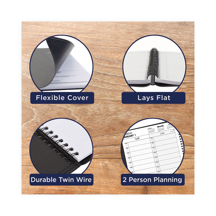 Two-Person Group Daily Appointment Book, 11 x 8, Black Cover, 12-Month (Jan to Dec): 2025