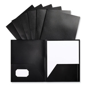 Two-Pocket Plastic Folders, 100-Sheet Capacity, 11 X 8.5, Black, 10/pack