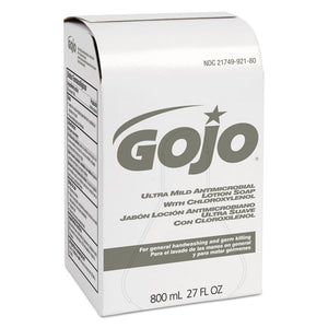GOJO Ultra Mild Antimicrobial Lotion Soap is a mild cleanser with 0.3 percent chloroxylenol (PCMX), a broad-spectrum antimicrobial agent, for gentle hand washing with effective germ killing potency. Formulated expressly for the healthcare professional who washes frequently and wants the additional protection of an antimicrobial soap. Natural, coconut soap base. Luxurious lather gently yet thoroughly cleans skin without stripping natural oils. Clean rinsing, pleasantly scented.