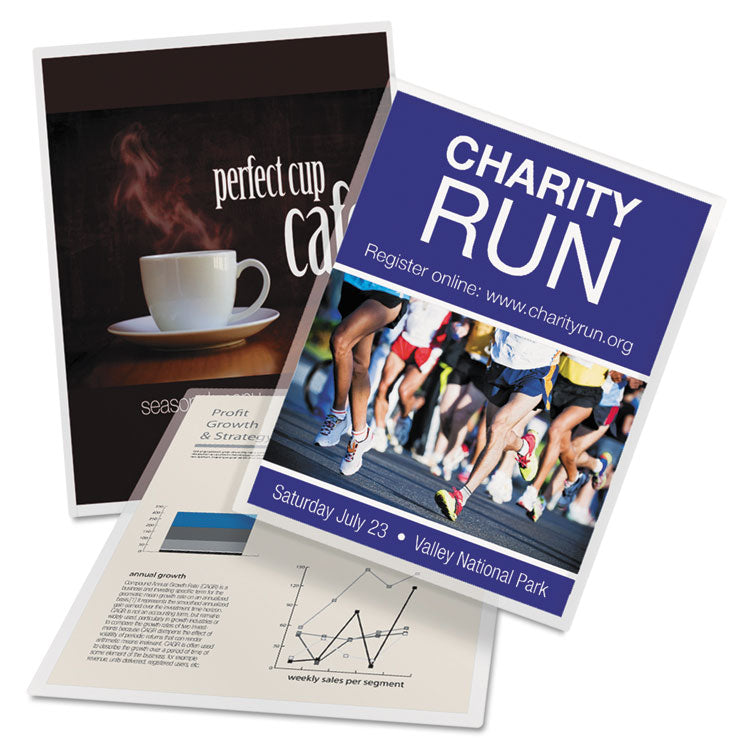 Thermal laminating pouches provide a clean and crisp look for professional results. Brilliant clarity shows off the details of text and colors in images.