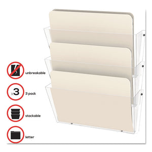 Unbreakable DocuPocket Wall File, 3 Sections, Letter Size, 14.5" x 3" x 6.5", Clear, 3/Pack