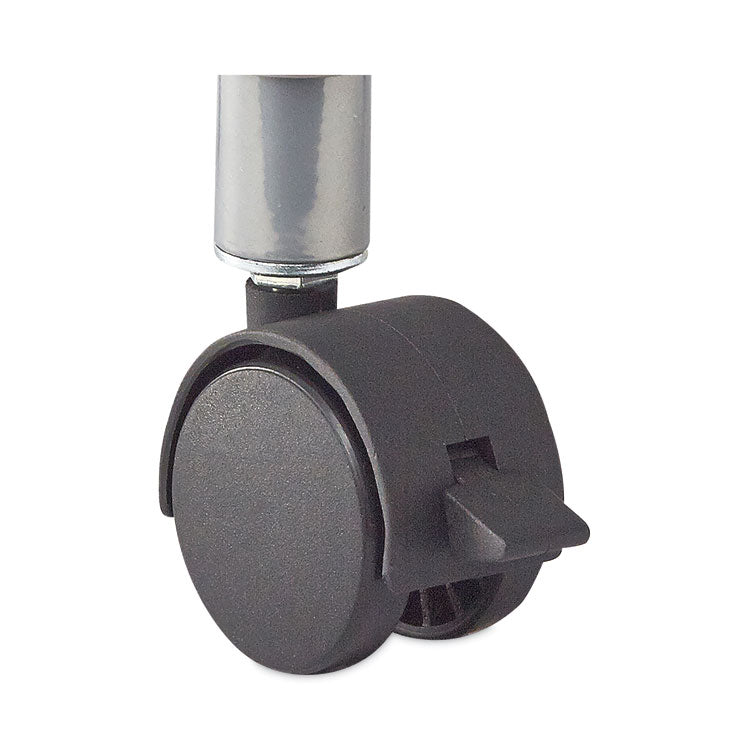 Maximize efficiency and keep your workspace organized with this versatile and compact printer stand, designed to accommodate most printers and fax machines with its spacious 19"w x 16"d surface. The sturdy steel wire shelf beneath provides convenient storage for extra paper, ink or office supplies, ensuring everything you need is within reach. Designed to fit neatly under most work surfaces, this stand helps save valuable floor space while keeping your office clutter-free. Built for durability and long-lasting use, the powder-coated steel frame resists scratches and wear, making it a reliable addition to any office or home workspace. For effortless mobility, the stand moves smoothly on four easy-glide casters, with two locking wheels to keep it securely in place when needed. Quick and easy to assemble with no tools required, this practical and space-saving printer stand is the perfect solution for a more organized and efficient office. Upgrade your workspace today!
