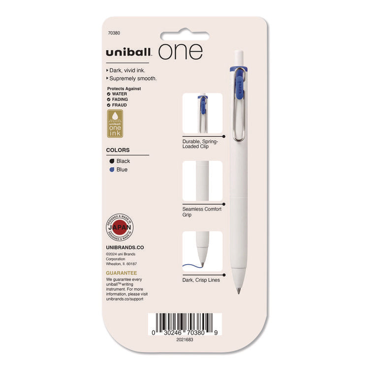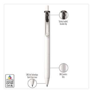 Experience the next stage of ink technology innovation with uniONE Retractable Gel Pens. The revolutionary gel ink is specially formulated with large pigments that do not absorb into the paper. This results in writing and drawing that is darker, brighter and ultra vivid. Quick drying gel pens resist smudging, smearing and bleeding, making them ideal for crisp and easy to read notes and assignments. A 0.7 mm medium tip strikes the perfect balance between bold and detailed lines. The sleek white barrel with integrated anti-slip grip makes this pen a stylish writing tool. Additionally, the functional wire clip indicates the gel ink color, as well as opens wide for easy attachment to papers, notebooks or folders. uni-ball® uniONE gel ink delivers superior writing performance whether at school, at home or at work.