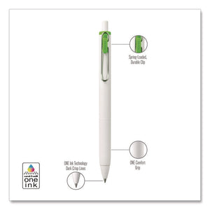 Experience the next stage of ink technology innovation with uniONE Retractable Gel Pens. The revolutionary gel ink is specially formulated with large pigments that do not absorb into the paper. This results in writing and drawing that is darker, brighter and ultra vivid. Quick drying gel pens resist smudging, smearing and bleeding, making them ideal for crisp and easy to read notes and assignments. A 0.7 mm medium tip strikes the perfect balance between bold and detailed lines. The sleek white barrel with integrated anti-slip grip makes this pen a stylish writing tool. Additionally, the functional wire clip indicates the gel ink color, as well as opens wide for easy attachment to papers, notebooks or folders. uni-ball® uniONE gel ink delivers superior writing performance whether at school, at home or at work.
