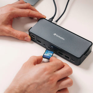 Rapid, uninterrupted file transfers are expected as this docking station utilizes 3.2 Gen 2 technologies and comes equipped with a gigabit Ethernet for stable, wireless connection. Our dock also has SD and microSD card reader slots to read and transfer files directly. An audio jack ensures you are able to connect your speakers and headsets for a simply dynamic workspace.