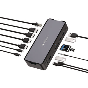 USB-C Pro Docking Station 15-in-1, Audio/DisplayPort/HDMI/Micro SD/RJ45/SD/USB-A/USB-C, Gray