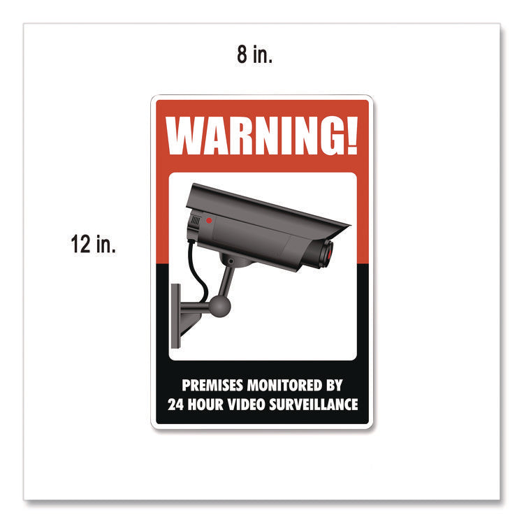 Uv-Coated Preprinted Molded-Plastic Sign, 24-Hour Video Surveillance, 8 X 12, Black/red/white