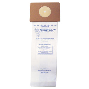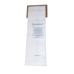 Designed specifically for commercial use. Premium filters and vacuum bags that meet or exceed OEM filter efficiency. Each filter bag is printed to easily identify the vacuum it fits. Proper filtration is vital when cleaning to prevent allergen and harmful particulates from being released back into the air. Janitized Vacuum Filter Bags provide indoor air quality, worker safety and facility clean air management.
