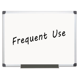 The Maya Magnetic Steel Dry-erase Board features a durable whiteboard surface and high-quality appearance through years of frequent use. Magnetic surface allows you to instantly post messages or attach your magnetic accessories. The professional Maya aluminum frame includes a four-corner mounting system that can be positioned either vertically or horizontally to provide versatility when reconfiguring an office or where wall space is limited. The adjustable pen tray offers a convenient way to keep your writing utensils within quick reach. This dry-erase board is perfect for classrooms, offices, training environments, meeting rooms and more.
