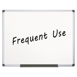 The Maya Magnetic Steel Dry-erase Board features a durable whiteboard surface and high-quality appearance through years of frequent use. Magnetic surface allows you to instantly post messages or attach your magnetic accessories. The professional Maya aluminum frame includes a four-corner mounting system that can be positioned either vertically or horizontally to provide versatility when reconfiguring an office or where wall space is limited. The adjustable pen tray offers a convenient way to keep your writing utensils within quick reach. This dry-erase board is perfect for classrooms, offices, training environments, meeting rooms and more.