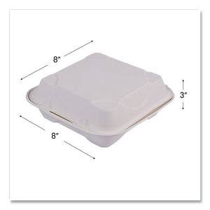 Vanguard Renewable and Compostable Sugarcane Clamshells, 8 x 8 x 3, White, 200/Carton