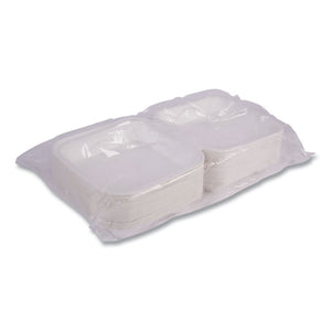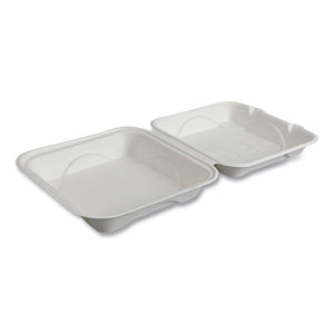 Vanguard Renewable and Compostable Sugarcane Clamshells, 9 x 9 x 3, White, 200/Carton
