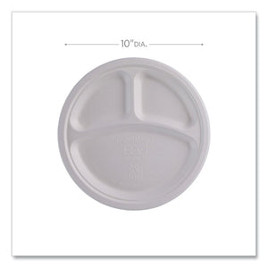 Vanguard Renewable and Compostable Sugarcane Plates, 3-Compartment Plate, 10" dia, White, 500/Carton