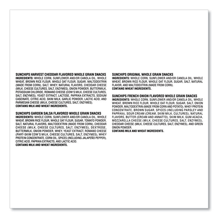Hearty grains, snappy crunch and great taste rolled into a light-textured and crispy chip. Variety mix contains all of your favorite flavors for a better snacking alternative.
