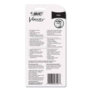 Velocity Max Pencil features a large eraser for more erasing power. The Velocity Max eraser is 75% wider compared to BIC Velocity Original Mechanical Pencil. This pencil also has a soft gel grip that molds to your hand. The strong lead provides smooth dark writing and erases cleanly. This pencil is perfect for standardized tests.