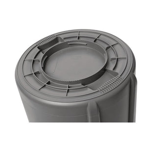 Vented Round Brute Container, 10 gal, Plastic, Gray