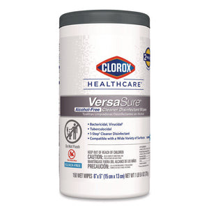 Clorox Healthcare VersaSure Cleaner Disinfectant Wipes kill over 40 pathogens quickly on a broad range of surfaces. These strong and durable clothlike wipes are your alcohol free solution to cleaning and disinfecting. VersaSure wipes are EPA registered to kill pathogens on hard surfaces in as fast as 30 seconds for most bacteria and viruses, including mumps, measles, MRSA and tuberculosis. These one step disinfecting wipes meet EPA efficacy testing requirements for hospital disinfection, making them great for daily use in your healthcare facility. Designed for patient and staff comfort, the alcohol free quat formula is made with no harsh chemical odors, fumes or added fragrances. The nonwoven wipe does not leave lint on surfaces, and the larger wipe covers more surface area with less effort. Intended for use in healthcare settings.