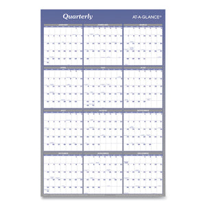 Vertical/Horizontal Erasable Quarterly/Monthly Wall Planner, 24 x 36, White/Blue Sheets, 12-Month (Jan to Dec): 2025