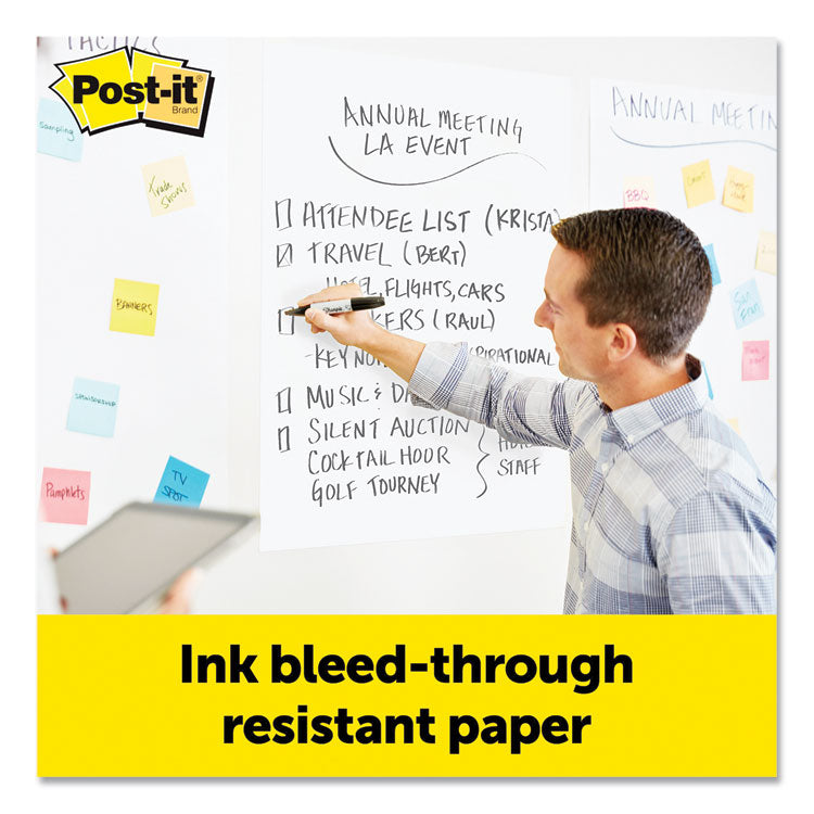 Use Post-it Easel Pads to capture and share ideas. With sheets that can stick almost anywhere, Post-it Easel Pads foster the imaginative thinking that lays the foundation for future growth. So when you want to successfully plan, collaborate, and capture and build on ideas, they're ready to help you succeed. Post-it Easel Pad sheets feature premium paper that resists marker bleed-through; they stick to most surfaces and can be repositioned again and again, without surface damage. The sturdy backcard features a handle for easy portability and universal slots to fit most easel stands.