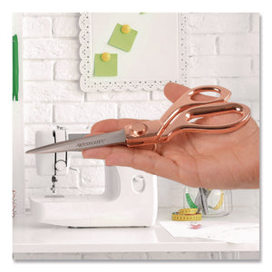 Westcott Vintage Stainless Steel Scissors feature fashionable cast alloy rose gold handles. Durable stainless steel blades are perfect for medium use, cutting through layers of paper, foam and poster board. Bent handle design cuts easily and comfortably on a flat surface. Westcott develops home and office products unmatched in style, design and performance. We continue to deliver results that are both inspirational and functional.