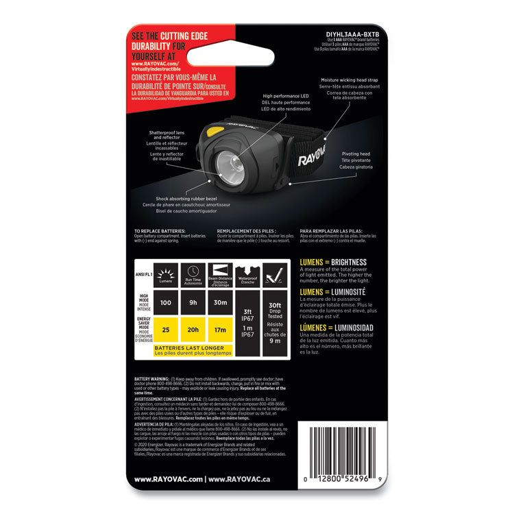 Virtually Indestructible Led Headlight, 3 Aaa Batteries (included), 30 M Projection, Black