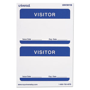 Visitor Self-Adhesive Name Badges, 3.5 x 2.25, White/Blue, 100/Pack