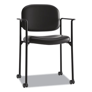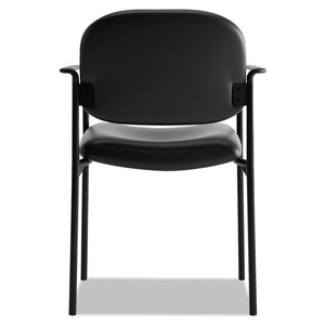 VL616 Stacking Guest Chair with Arms, Bonded Leather Upholstery, 23.25" x 21" x 32.75", Black Seat, Black Back, Black Base