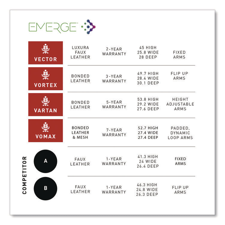 Ready. Set. Game On. Elevate your game with the Vomax, a gaming chair that empowers from Emerge. Dominate the competition with this ergonomic chair that provides maximum comfort and integrates a lounging experience into long hours of gaming. It features a retractable footrest, 135 degree recline, padded headrest and lumbar support pillow. Customize your seating position with seat height adjustment and tilt lock. With advanced features that can easily be fine-tuned to your preferences, you'll soon be ready to take on your next challenge.