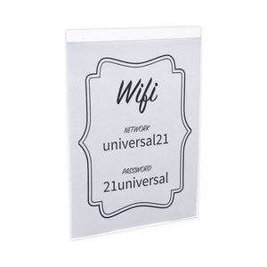 This wall mounted horizontal or landscape sign holder keeps signage neat and clean and protects it from damage. Features pre-drilled holes for easy wall mounting. Signage loads from the top and can be easily changed without removing sign holder from wall. Durable clear plastic construction with full visibility. Multi-pack includes two wall signs with mounting screws.