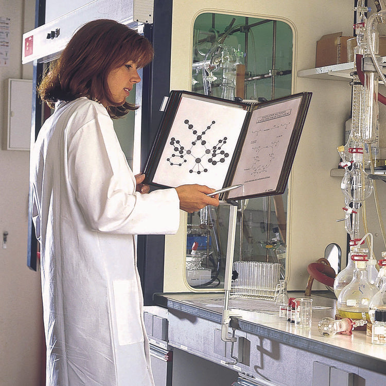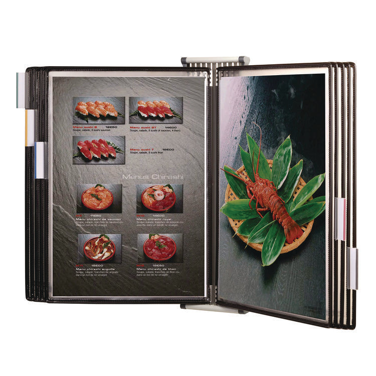 - Ten black-frame, letter size antimicrobial pivoting pockets for 20 total views.