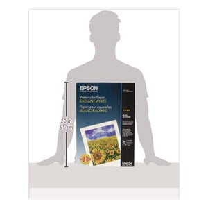A thick, heavyweight paper with a coated matte surface, this affordable media has the look and feel of fine art paper. Perfect for presenting photographic reproductions and graphic designs on matte textured surfaces, this media offers a different look from resin coated photo papers. Dries instantly for easy handling with Epson® inks. Enhanced 1440 dpi printing for high-quality output. Rich black images for prints with exceptional contrast. Radiant white surface for vivid color reproduction. Has the look and feel of fine art paper--different from resin coated photo papers. Perfect for presenting photographic reproductions and graphic designs on a textured matte surface.