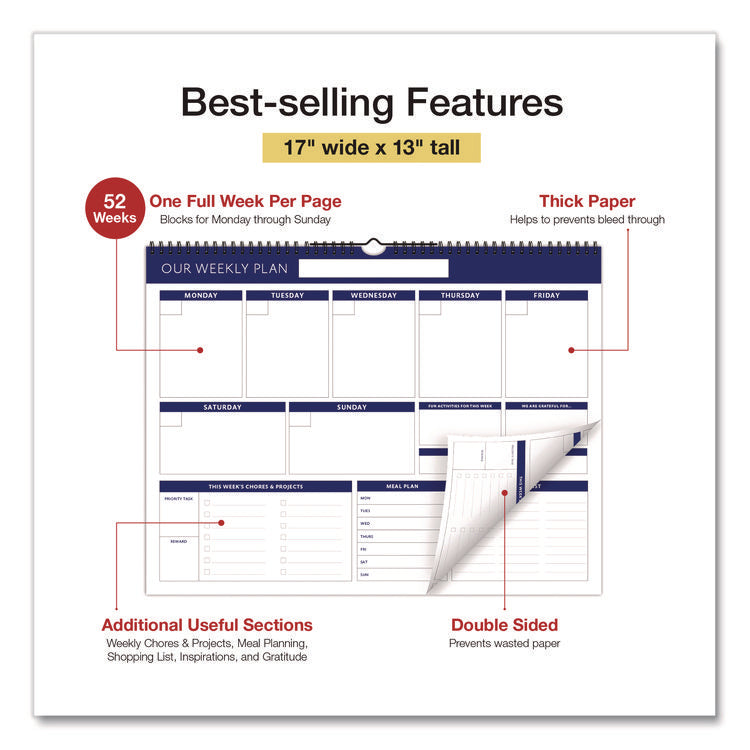 Weekly Family Planner, 17 x 13, White/Blue Sheets, 52 Weeks: Undated