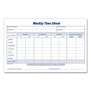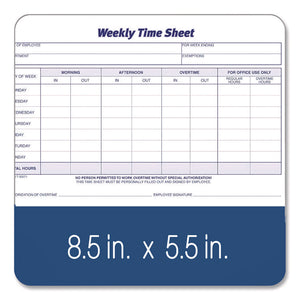 Weekly Time Sheets, Two-Part Carbonless, 8.5 x 5.5, 100 Forms Total