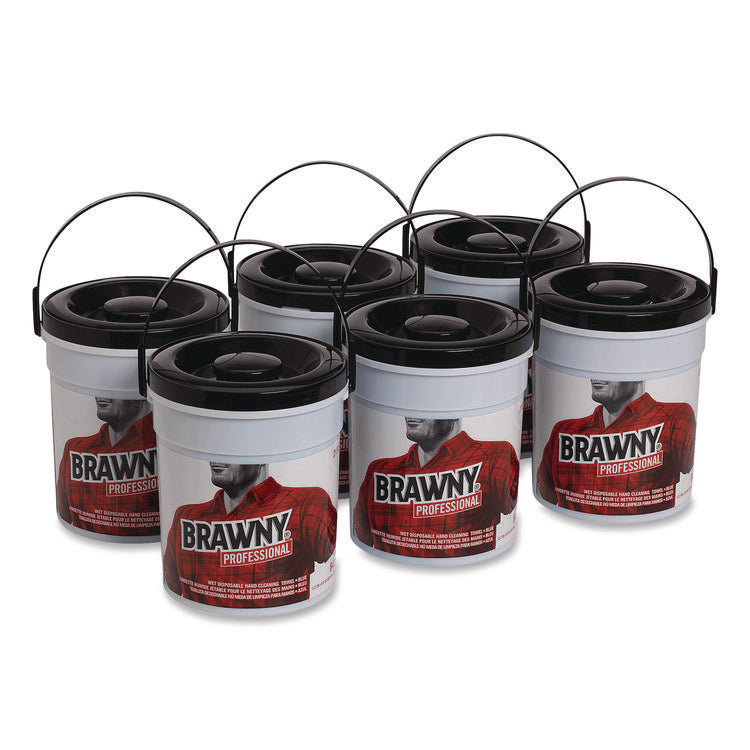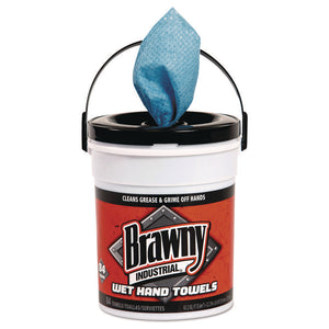 Feature cloth-like softness that allows you to easily wipe and clean greasy and grimy hands on the spot. Soft, durable and strong with no gritty residue and clean, fresh scent make these a perfect clean-up solution. Portable pail with one-at-a-time dispensing provides added wiper protection, keeps wipes moist, helps reduce waste and control costs. Convenient container ensures industrial wipes are available where needed.