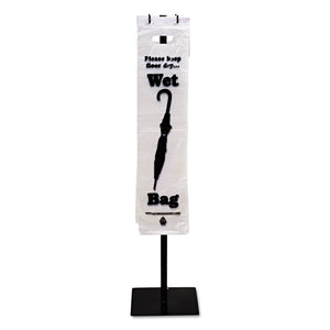 Umbrella bags help keep floors dry and help prevent slip-and-fall accidents, reducing liability lawsuits. Offer customers or visitors a welcome service. Includes die-cut handle and pocket for easy insertion or retrieval of umbrella. Recyclable bags are packed for easy display and fit virtually all sizes of umbrellas.