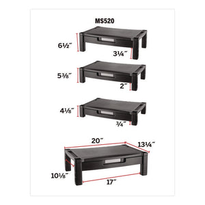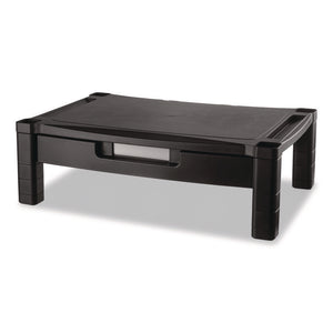 Wide Deluxe Two-Level Monitor Stand With Drawer, 20" X 13.25" X 3" To 6.5", Black, Supports 50 Lbs