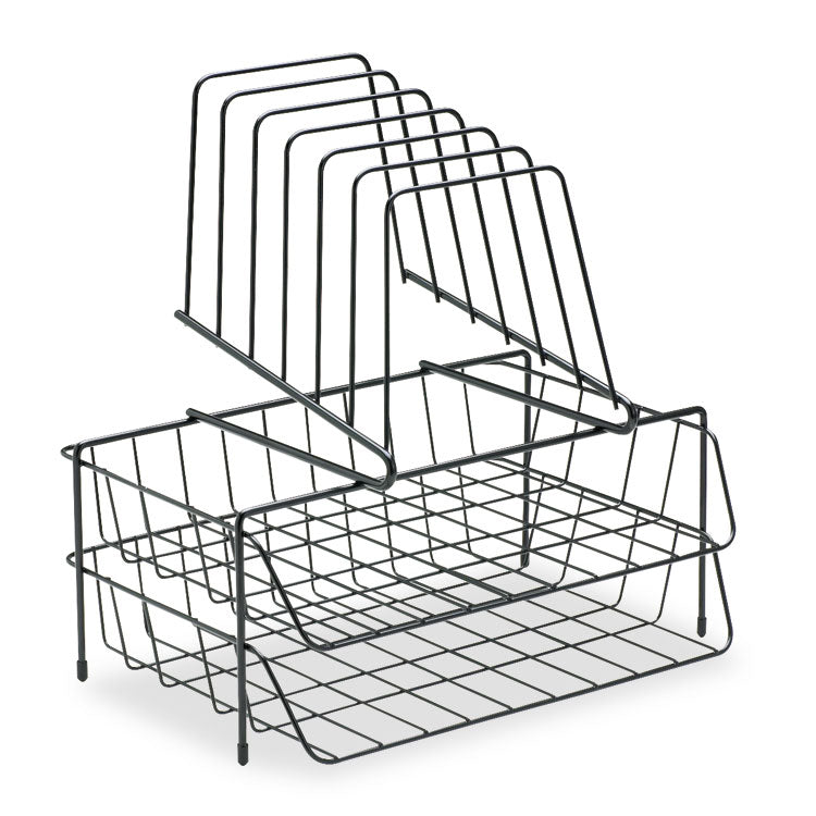 Wire Double Tray With Step File Sorter, 8 Sections, Letter Size Files, 13.88" X 10.13" X 14", Black