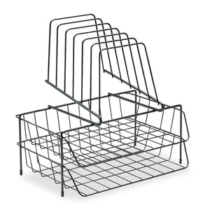 Fellowes wire double tray with step file helps to organize and prioritize. Space-saving design incorporates two side load letter-size trays under a step file sorter. Sturdy, sleek wire construction. Rubber feet. 100% recyclable. Perfect for your office or home office, school, or anywhere you need to organize your important papers and documents. Look for other coordinating wire desktop accessories from Fellowes.