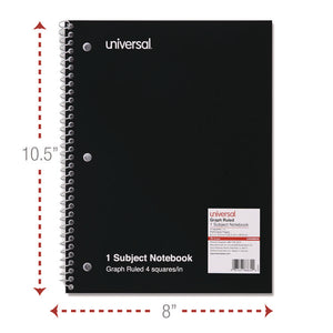 Wirebound Notebook, 1-Subject, Quadrille Rule (4 sq/in), Black Cover, (70) 10.5 x 8 Sheets